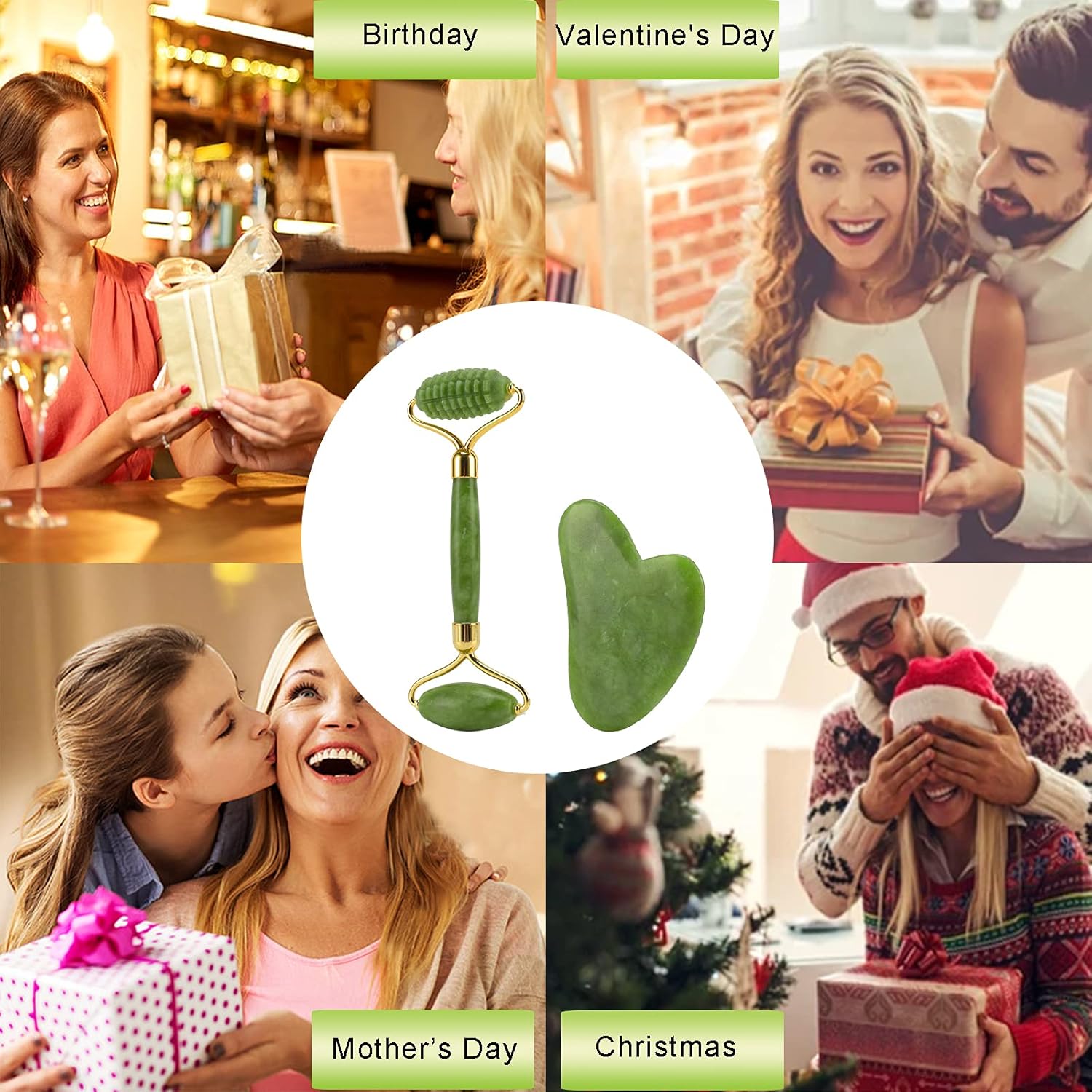 • Natural Jade Stone: Made from authentic jade stone, known for its cooling and calming properties that soothe the skin and promote relaxation.